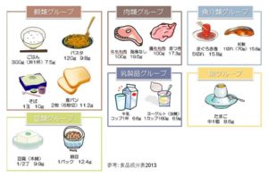 | 豚肩ロース・・・とんかつ、生姜焼き 鶏もも肉・・・焼きとり、焼肉 あじ・・・焼き魚、刺身 さば・・・焼き鯖、味噌煮 納豆・・・そのまま 乳製品・・・牛乳、バター、チーズ等 |